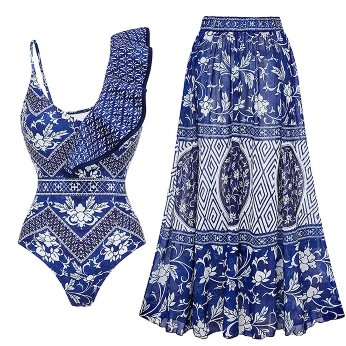 2024 V Neck Ruffle Bikini Swimsuit High Waist Swimwear for Women Print Summer Female Halter Cut Out Two Piece Bathing Suits